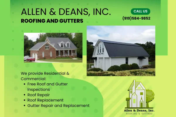 Since 1999, Allen and Deans Gutters Service has provided Raleigh homeowners with reliable, results-driven roofing repair and replacement. Whether you need a targeted roof repair for a leak after a storm or a full asphalt shingle roof replacement, our crews deliver professional workmanship, transparent pricing, and proven process that reduces risk and increases curb appeal. We diagnose problems quickly with a thorough inspection and photo-documented findings, then present clear options: targeted repairs to extend the life of your roof or a full replacement using high-performance materials. Our team installs architectural and three-tab asphalt shingles, standing seam metal, and premium slate where appropriate, and we’re certified with major manufacturers to ensure warranties and long-term protection. We coordinate with insurance companies to maximize homeowner claims for storm damage and hail, guiding you step-by-step through documentation and mitigation to speed up approvals and limit out-of-pocket costs. Local homeowners searching for “roofer near me,” “roof repairs,” or “replace roof Raleigh NC” get fast responses and same-day emergency leak service when needed. Every replacement follows code-compliant roof deck preparation, underlayment upgrades, proper ventilation, and certified flashing installations to avoid recurring leaks and roof hail damage. Our emphasis on quality materials, certified installation, and post-job cleanup means less call-backs and stronger resale value for your home. Choose Allen and Deans for honest assessments, fixed-price quotes, and warranties that protect both materials and workmanship. If you’re looking for residential roofers near me or the best roofing company in Raleigh, our local teams combine decades of roofing experience with accessible communication and clear timelines so you know exactly what to expect. Schedule a professional roof inspection today to determine whether repair or replacement is the best path forward and protect your investment before minor issues become major problems.